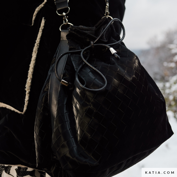 Esta tela es perfecta para prendas exteriores, faldas estructuradas y complementos como bolsos o cinturones, aportando un toque de elegancia con su acabado negro satinado. Su textura única la convierte en una elección moderna y versátil para proyectos de moda contemporánea.