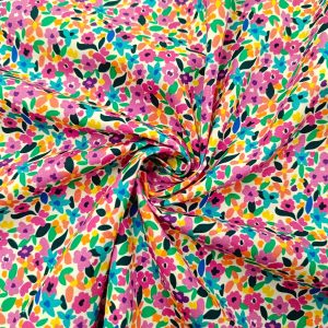 El popelín de algodón estampado Floral Fucsia es un tejido ligero, suave y de gran calidad, perfecto para todo tipo de proyectos creativos.