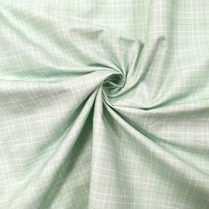 Tejido de sábana 100% algodón de 200 hilos, con un ancho de 2,80 m y estampado de cuadros sobre fondo verde agua. Este tejido natural, fresco y transpirable resulta ideal para confección de ropa de cama, cojines o cualquier labor de costura creativa. También es perfecto como trasera para proyectos de patchwork.