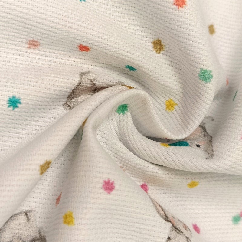 Este piqué está fabricado en 100% algodón, lo que lo convierte en un tejido natural, suave y transpirable, ideal para el cuidado de la piel delicada de los más pequeños.