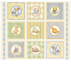 Panel con temática de costura. Presenta una escena de hadas rodeadas de útiles de costura.