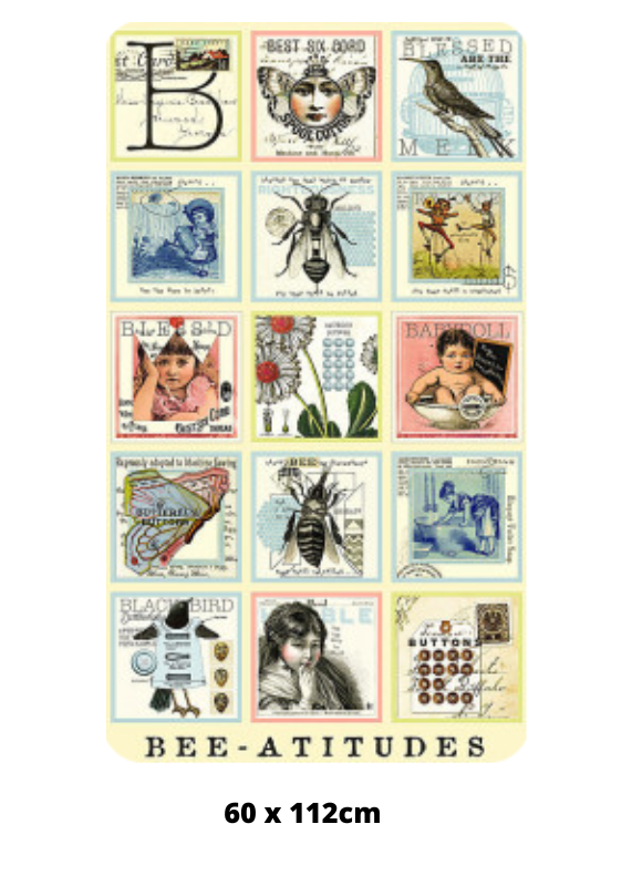 Panel formado por 15 cuadrados de 18 x 18 cm. en los que se representan escenas de aire antiguo con diferentes temáticas y mensajes en inglés.