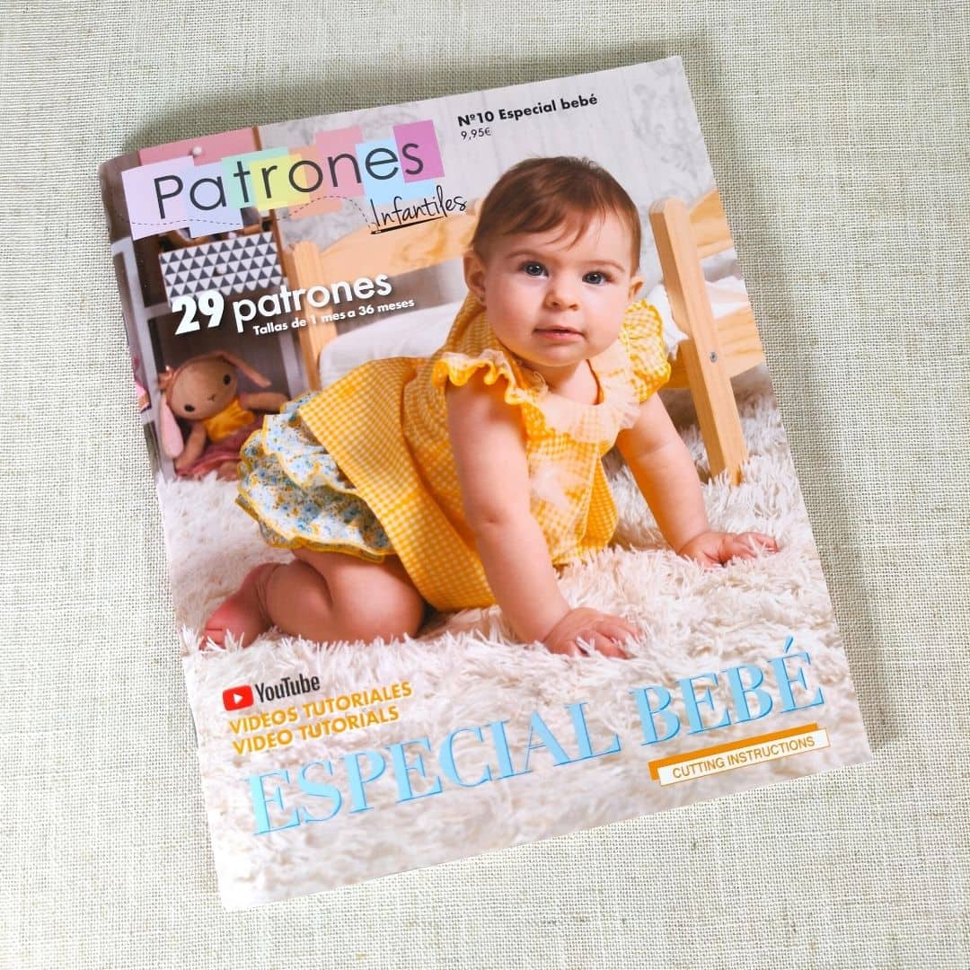 Revista Patrones Infantiles, nº 10. – Especial bebé, 29 modelos de patrones. Tutoriales con el paso a paso en youtube. Instrucciones de corte incluidas.