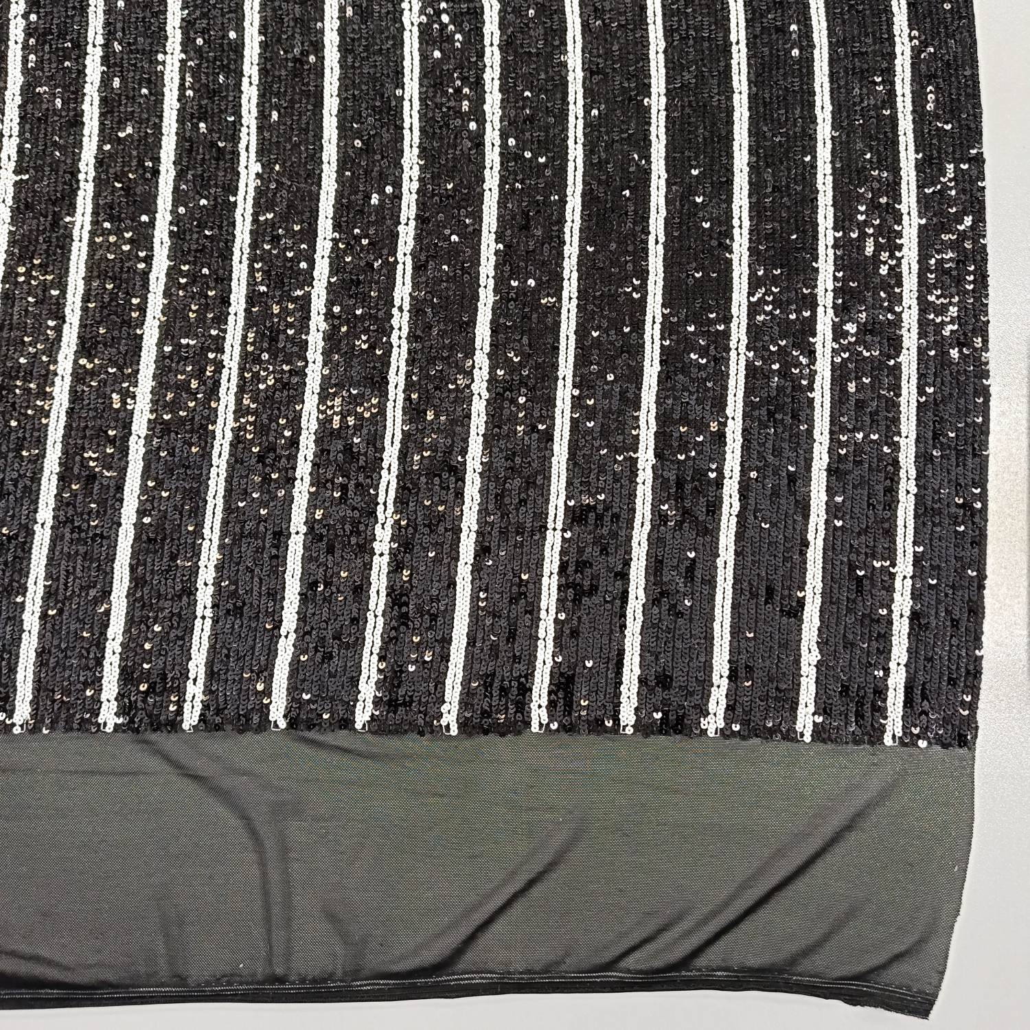 El Paillettes Negro y Blanco es un tejido moderno y sofisticado que combina contraste y brillo en una composición visual impactante. Su base flexible está cubierta por lentejuelas dispuestas en franjas verticales alternadas en negro y blanco, creando un efecto gráfico elegante y dinámico. Ideal para vestidos de fiesta, chaquetas, tops, trajes de escenario, danza y complementos, este tejido aporta movimiento y luz a cada diseño. La densidad de las lentejuelas garantiza un acabado uniforme y profesional, mientras que su estructura elástica facilita la confección y el ajuste al cuerpo. Perfecto para quienes buscan un estilo audaz, contemporáneo y lleno de personalidad.