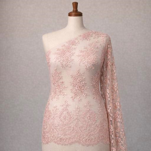 El Tul Bordado Rosa es un tejido sofisticado que destaca por su contraste elegante y su diseño floral de alta precisión. Sobre una base de tul rosa se desarrolla un bordado con flores, hojas y ramas que aportan textura, volumen y un acabado visual refinado. El hilo brillante utilizado en el bordado realza cada detalle, creando un efecto luminoso y elegante. El borde festoneado con mayor densidad decorativa. Es ideal para vestidos de fiesta, cuerpos, mangas, faldas, aplicaciones, moda escénica y alta costura, gracias a su caída suave y su presencia escénica. Un tejido perfecto para quienes buscan un estilo elegante, moderno y con un toque de color intenso y sofisticado.