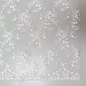 Tul bordado Martha con diseño floral y borde festoneado. Tejido elegante y delicado para novia, invitada y alta costura.