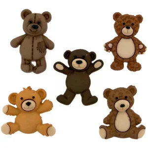 Pack de botones creativos con 5 botones decorativos de osos, perfectos para dar un toque divertido a tus prendas o manualidades.